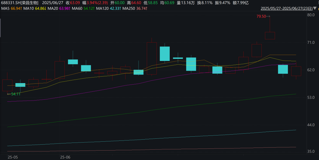 公告海外授权次日,荣昌生物A股、H股双双大跌,跌幅均超10%
