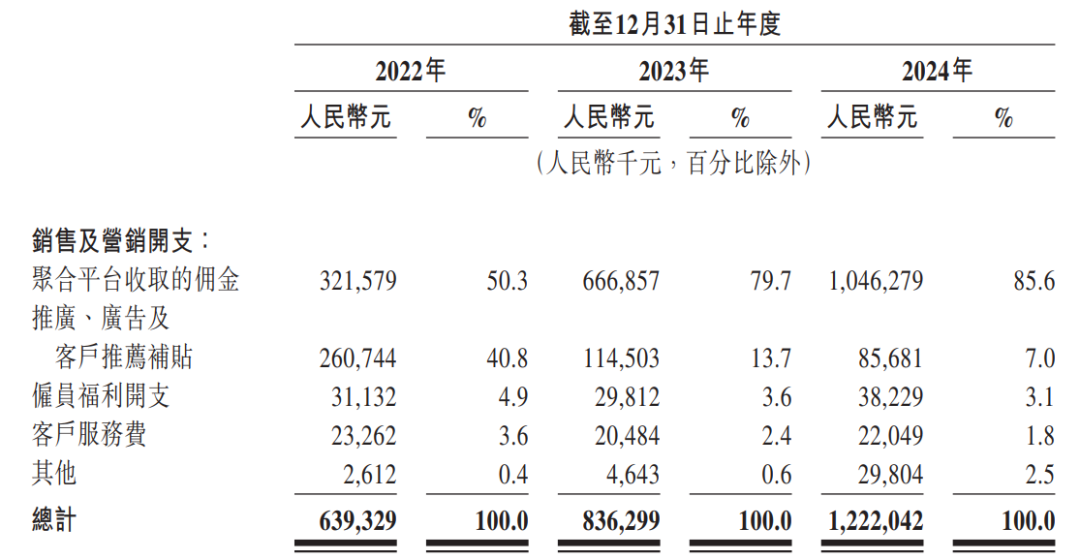 因此,公司支付给聚合平台的佣金成本也快速增长,从2022年的3.2亿元激增至2024年的10.5亿元。公司在招股书中表示,若与主要聚合平台的合作发生变动或终止,可能导致可服务订单量骤减,进而对业务运营及财务状况造成重大不利影响。