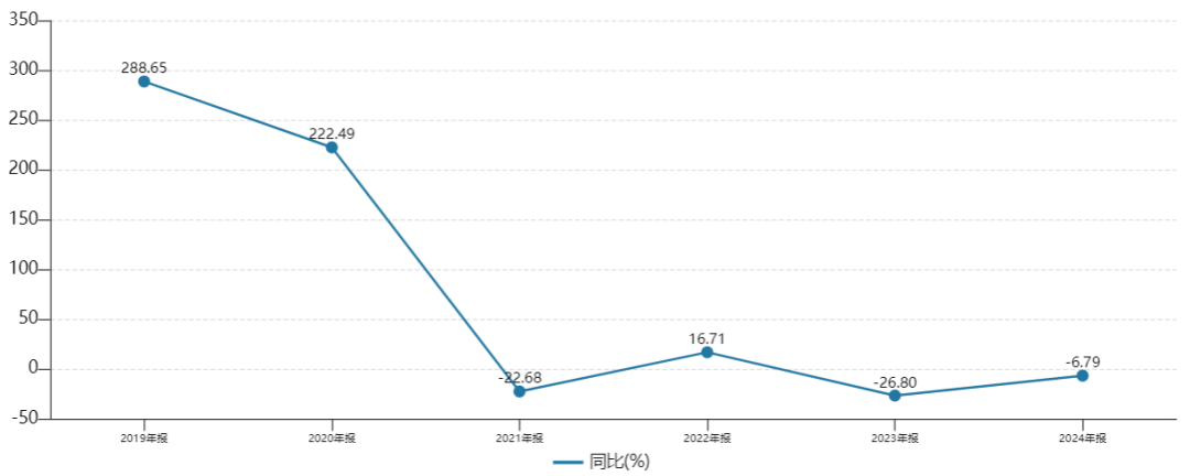 阿宽食品2019年至2024年归母净利润同比增长情况(%)