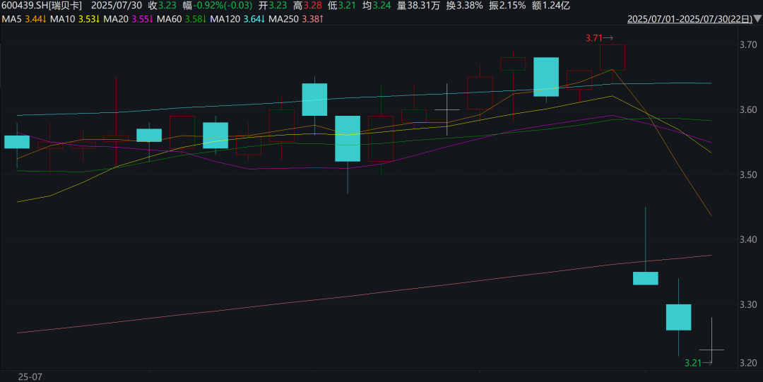时隔两天,公司亦发布2025年半年度业绩快报。今年上半年,公司营收微增4.20%至5.98亿元,归母净利润同比增长15.31%至约938万元。二级市场端,瑞贝卡股价于7月28日大幅低开,当天报收于3.33元/股(不复权),较前一交易日下挫10%,7月29日公司股价续跌2.1%,当前总市值约为37亿元。