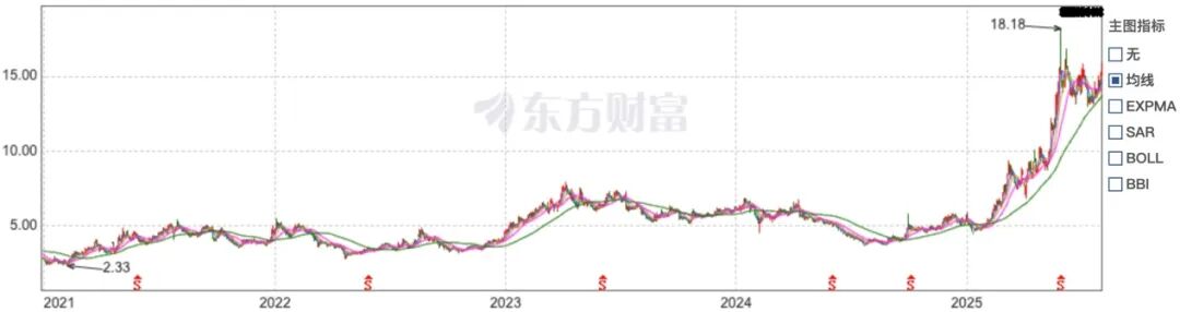 投资时间网、标点财经研究员注意到,自今年2月下旬开始,或受国际金价走高影响,潮宏基股价从5元/股附近开始持续上扬。在5月30日、6月3日和6月4日连续三个交易日里,该股收盘价格涨幅偏离值累计超过20%,并于6月5日涨至18.18元/股(按前复权计算,下同)的阶段性高点。截至8月4日收盘,该股报收于15.16元/股,仍处于近年来股价相对高位。