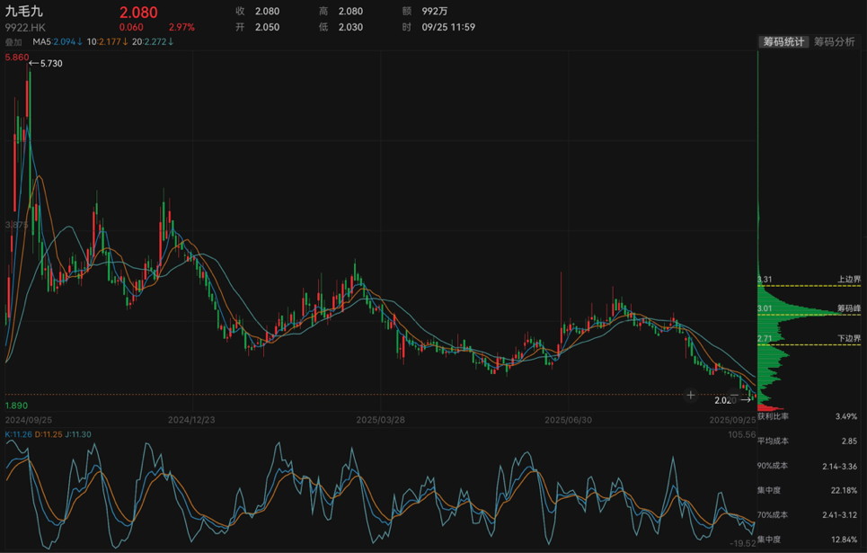 中报业绩披露后,摩根士丹利发布研报,将九毛九2025至2027年每股盈利预测分别下调9%、6%及10%,主要反映公司年初至今需求弱于预期。此外,自今年二季度起,因外送平台价格竞争加剧对整体餐饮市场的堂食需求造成进一步压力,该行将公司2025至2026年收入预测下调13%至14%,将2027年收入预测下调10%。