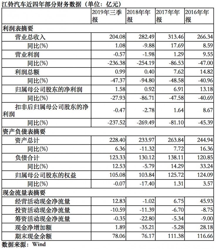 10月22日晚间,江铃汽车(000550.SZ)披露2019年第三季度报告,由此掀开了A股车企三季报的第一张面纱。