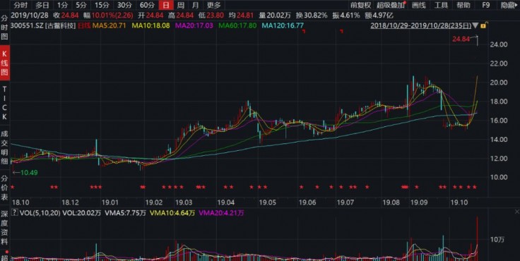 10月28日,古鳌科技收报第五个涨停,当天晚间,其最新公告披露的《2019年10月28日投资者关系活动记录表》显示,又有4家机构于28日到公司集中调研。