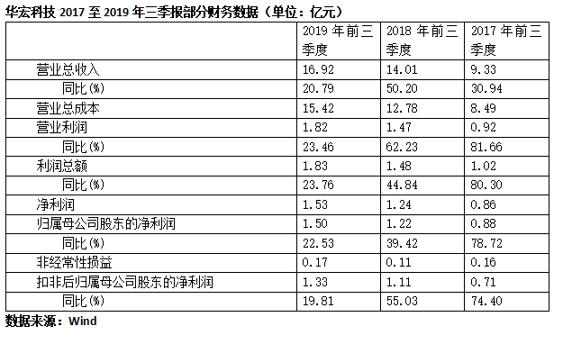 事实上,华宏科技近年来业绩增速呈下滑趋势。最新发布的三季报显示,今年前三季度,华宏科技实现营业收入16.92亿元,同比增长20.79%,实现归属母公司股东的净利润1.5亿元,同比增长22.53%。而2017年及2018年前三季度,该公司营收同比增速分别为30.94%及50.2%,归母净利润增速分别为78.72%及39.42%,增速下滑明显。