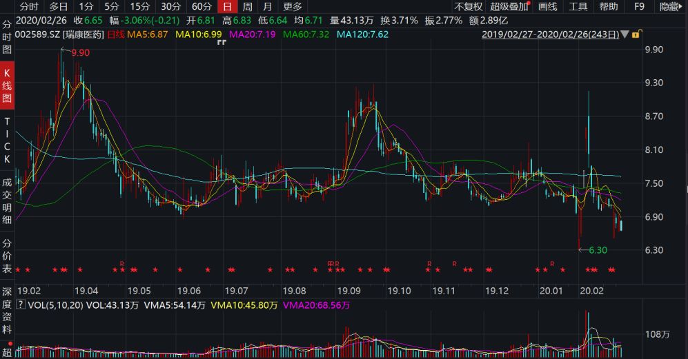 不过,瑞康医药却颇为另类。2月3日股价碰到6.30元低点之后,2月4日、5日、6日连续大涨,2月7日见到短期高点后迅速回落,2月26日收盘价6.65元,基本回到此轮启动前的2月3日股价位置。在沪指、创业板指数高歌猛进的时候,属于医药股范畴的瑞康医药却持续逆市走低,不免让其投资者颇为失望。