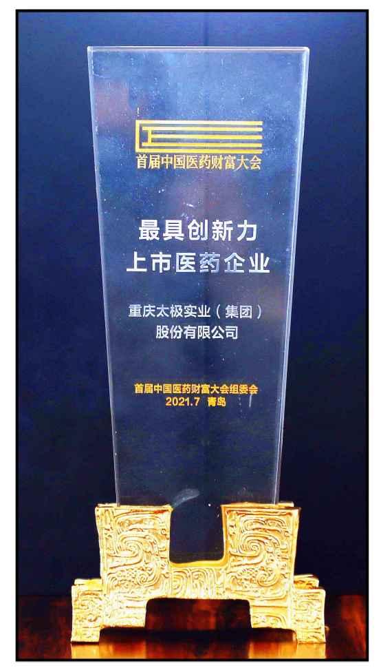 近日,由青岛市人民政府和中国医药物资协会共同主办以“聚焦金融前沿,融汇产业资本”为主题的首届中国医药财富大会,全国医药大健康产业和投融资机构的领军人物、行业精英共话医药健康产业投资合作,探索医药大健康产业高质量发展之路,为医药上市企业搭建合作交流平台,推动金融与实体经济、资本与产业深度融合。大会首次发布了中国医药大健康上市企业研究报告及医药上市企业系列榜单,太极集团(股票代码:600129)获评“最具创新力上市医药企业”。