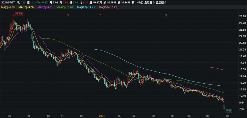 7月27日,科德教育股价大跌10.47%至7.1元/股,公司市值为21亿元。