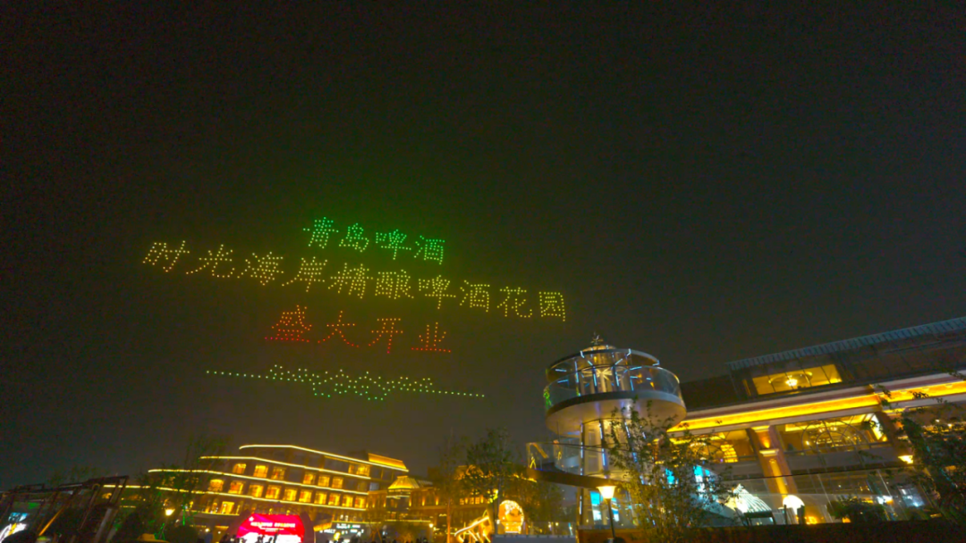 此外,在开业期间,青岛啤酒·时光海岸精酿啤酒花园举办了精酿品鉴会、精酿音乐派对等一系列丰富而热烈的庆祝活动,带领大家追溯流动的时光,感受行进的生活。晚上,青岛啤酒·时光海岸精酿花园里的“自在好时光”仍在继续,夜空也跟着沸腾。一场绚丽夺目的无人机编队表演,精酿啤酒花园建筑造型的复刻、啤酒主题的六大时尚业态等12幅画面逐一闪现在夜幕中,打造了一场专属于中国啤酒之都的“星空奇景”。