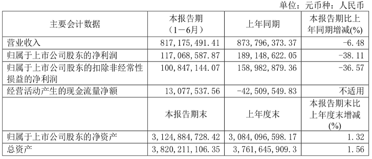 今年上半年,丸美股份营业收入与净利润呈双下滑态势。其中营收下滑6.48%至8.17亿元,归属于上市公司股东的净利润下滑38.11%至1.17亿元