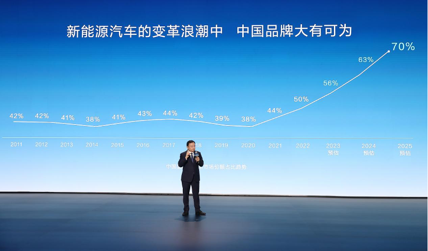 王传福表示,新能源的发展趋势是不可逆的,并预测2025年中国市场新能源汽车渗透率将超60%,中国汽车品牌市场份额将提升至70%,实现跨越式发展。同时,中国有创造世界级汽车品牌的基础和实力,中国汽车产业必将诞生一批令人尊敬的世界级品牌。