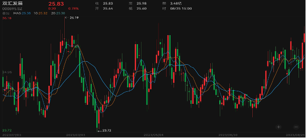二级市场方面,从2013年到2020年,双汇发展股价从11.33元/股一路上升,最高涨至55.75元/股,累计涨幅近5倍,市值突破2000亿元。但从2021年起,该公司股价持续下滑,截至8月25日收盘,双汇发展收于25.83元/股,较最高点已下挫54%,目前市值为895亿元。