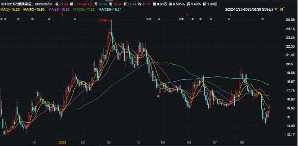 这样的业绩自然难令投资者满意。8月22日,箭牌家居股价低开后进一步走低,午后更是一度触及跌停。截至8月30日收盘,该股报收于15.93元/股,较业绩发布之前的17.53元/股收盘价下跌9.13%,市值为155亿元。