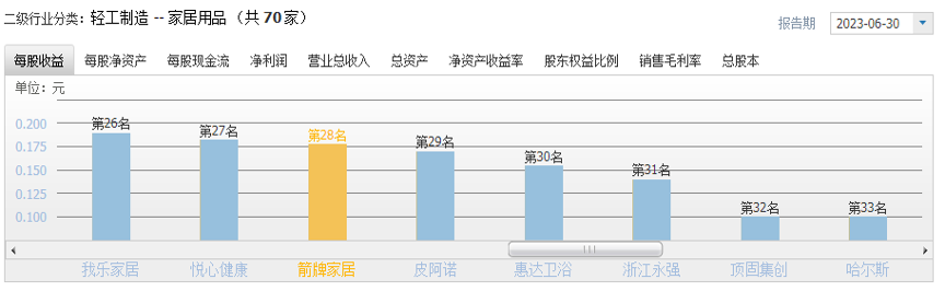 对比同行来看,据同花顺数据统计,2023年上半年,在轻工制造(家居用品)70家企业中,箭牌家居的毛利率排在第23位。