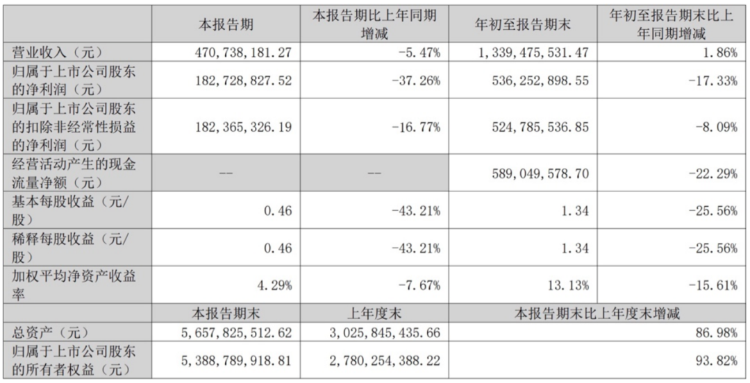 据业绩报告数据披露,今年第三季度,敷尔佳营收净利双降,其中,营业收入同比下降5.47%至4.71亿元,归母净利润同比下降37.26%至1.83亿元。