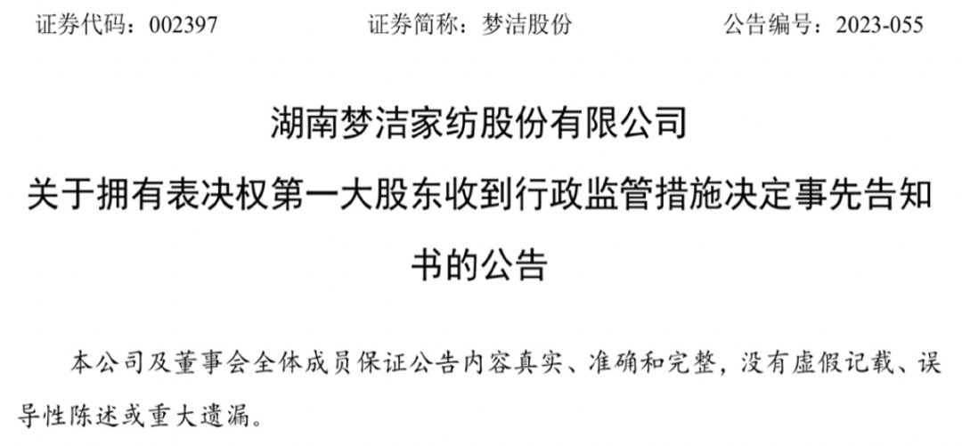 一份行政处罚事先告知书,将梦洁股份最大股东代持的“秘密”公之于众。