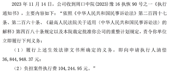 此外,《投资时报》研究员注意到,近日,莲花健康持续多年的借款合同纠纷也有了新进展。今年11月14日,莲花健康收到的《执行通知书》显示,该公司需向申请执行人国开行河南省分行清偿3684.49万元。同时,该公司还需负担案件执行费10.42万元。