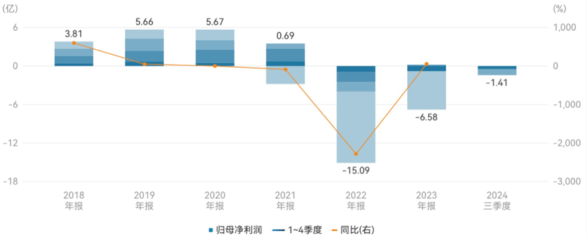整体来看,前三季度,帝欧家居实现营收20.47亿元,同比下滑25.4%;净亏损为1.41亿元,同比下滑115.89%;经营活动产生的现金流量净额为1.16亿元,同比下滑69.05%;加权平均净资产收益率为-6.72%,同比下降4.40个百分点。