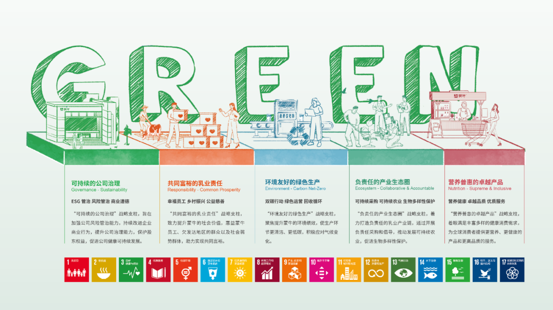 长期以来,以“守护人类和地球共同健康”为愿景,蒙牛制定了“GREEN可持续发展战略”,全产业链践行绿色可持续发展道路。