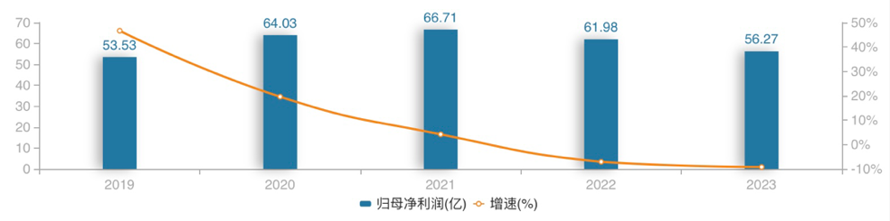 Wind数据显示,2021年至2023年,海天味业营业收入分别为250.04亿元、256.10亿元、245.59亿元,同比变动分别为9.71%、2.42%、-4.10%;归母净利润分别为66.71亿元、61.98亿元、56.27亿元,同比增速分别为4.18%、-7.09%、-9.21%。2022年,该公司归母净利润出现上市以来首降,2023年公司更是出现营收、归母净利润同时下滑的局面。