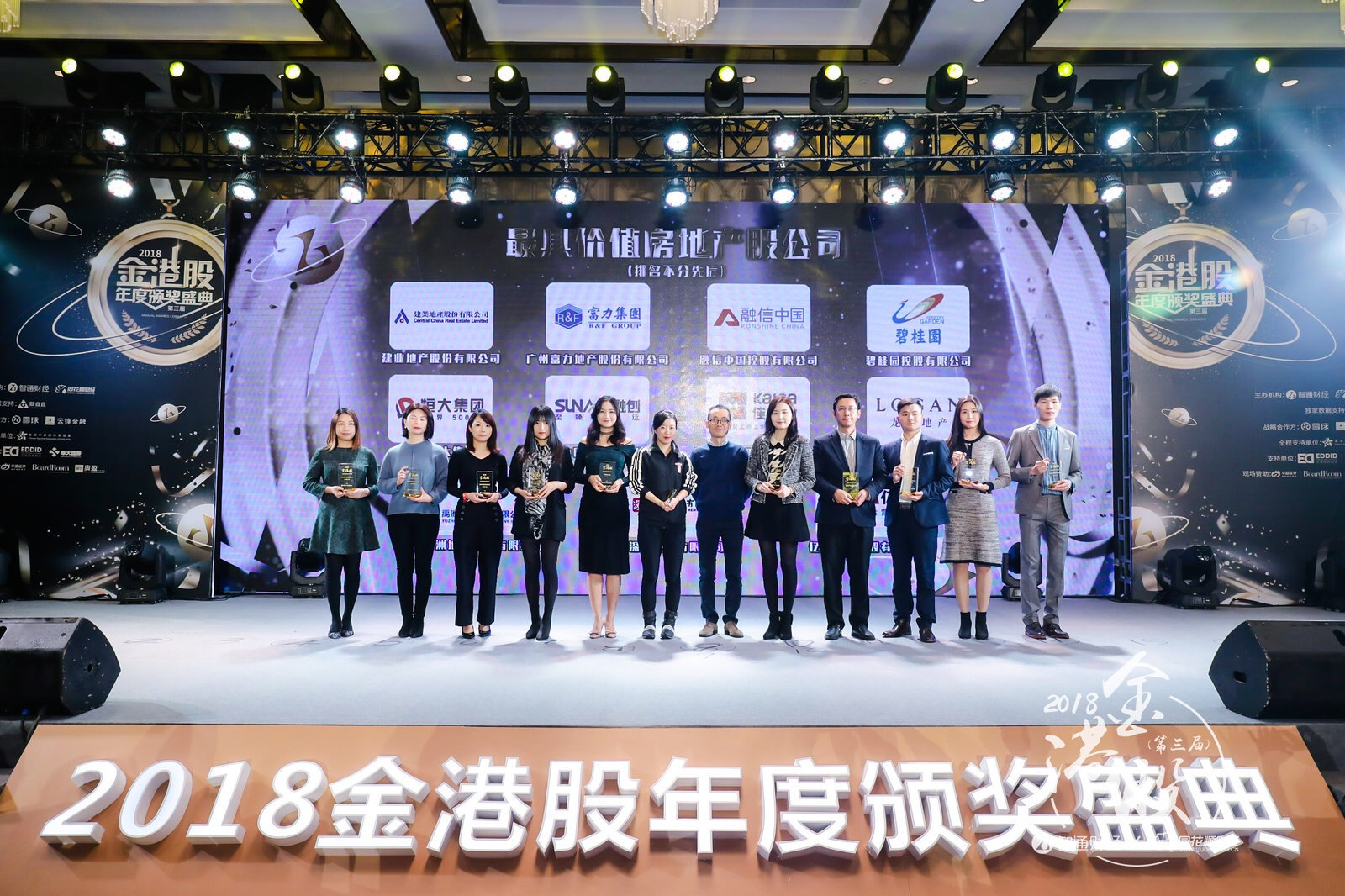 此次“2018金港股最具价值房地产股公司”奖项,旨在表彰2018年成长速度快、资本市场倍受关注并且有极大发展潜力的房地产企业。上述11家房企获此殊荣,也凸显业界和投资人对房地产行业的积极关注。