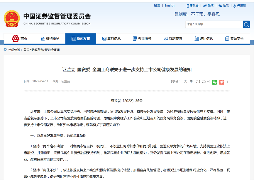 4月11日晚间,证监会、国资委及全国工商联发布《关于进一步支持上市公司健康发展的通知》,通知明确提出,支持房企转型,支持民营房企融资。