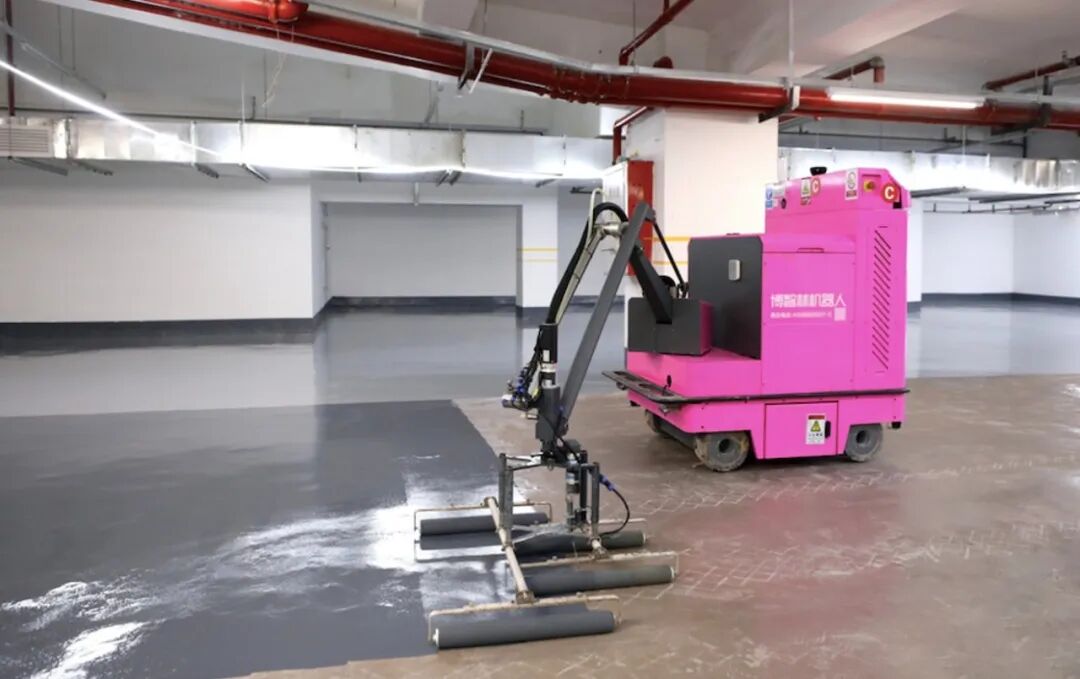 同年10月,博智林的室内喷涂机器人进驻深圳瑞和建筑・佛山项目,在佛山完成的一次样板间乳胶漆喷涂作业。相较传统人工模式,室内喷涂机器人的最大综合工效可达到150㎡/h,约为人工辊涂的4倍;而自动作业覆盖率可达90%至100%。两个月后,博智林又在碧桂园汕头金平项目首次完成“BIM+FMS+WMS+建筑机器人”多机施工系统的验收,共有8款施工机器人、6款运输及上料机器人、5款集中工作站开展多机协同装修施工作业。