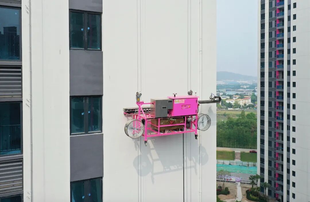 碧桂园博智林卷扬式外墙乳胶漆喷涂机器人。
