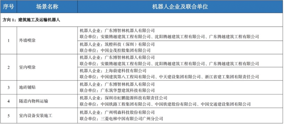 工信部关于建筑领域机器人应用优秀场景公示名单