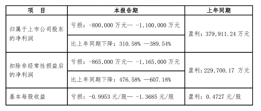 华侨城A预计,2022年全年实现归母净利润为-80亿元至-110亿元,上年同期为盈利37.99亿元,同比下降310.58%至389.54%。这或是该公司自1997年上市以来的首次亏损