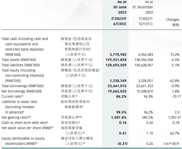 资金方面,截至今年上半年,建业地产持有的总现金(包括现金及现金等价物,以及受限制银行存款)仅有37.79亿元,较年初减少13.2%;同时,该公司一年内或须要求偿还的银行借款、其他借款和优先票据分别达79.41亿元、15.59亿元和138.50亿元。其中,仅其他借款数值较年初减少,银行借款和优先票据分别较年初增加34.15亿元和76.15亿元。由此可以看到,建业地产目前的资金或难以覆盖同时期债务。