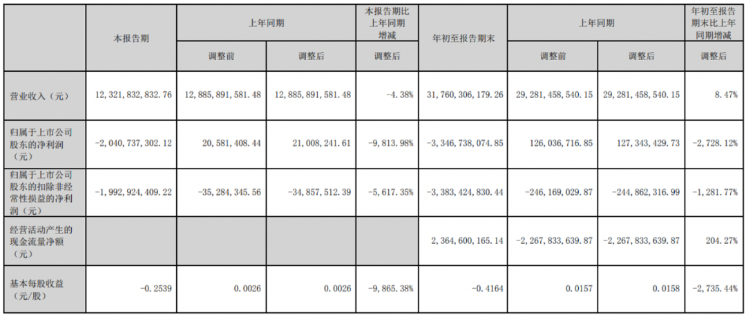 今年第三季度,华侨城A实现营业收入123.22亿元,同比减少4.38%;实现归母净利润-20.41亿元,同比大幅减少9813.98%