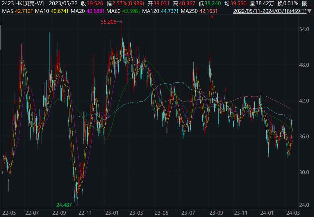 贝壳过去两年所坚持的“高品质增长”这一主旨下的一系列举措为公司带来了巨大的运营杠杆,并为“翻越第二座山”创造了更多安全边际。浙商证券表示,2024 年是行业“扭转”关键时期,在政策持续发力的情况下市场有望企稳修复,考虑到新房市场“卖一买一”置换链条的逻辑长期存在,二手房市场有望率先迎来修复,看好贝壳作为居住企业龙头的受益潜力。