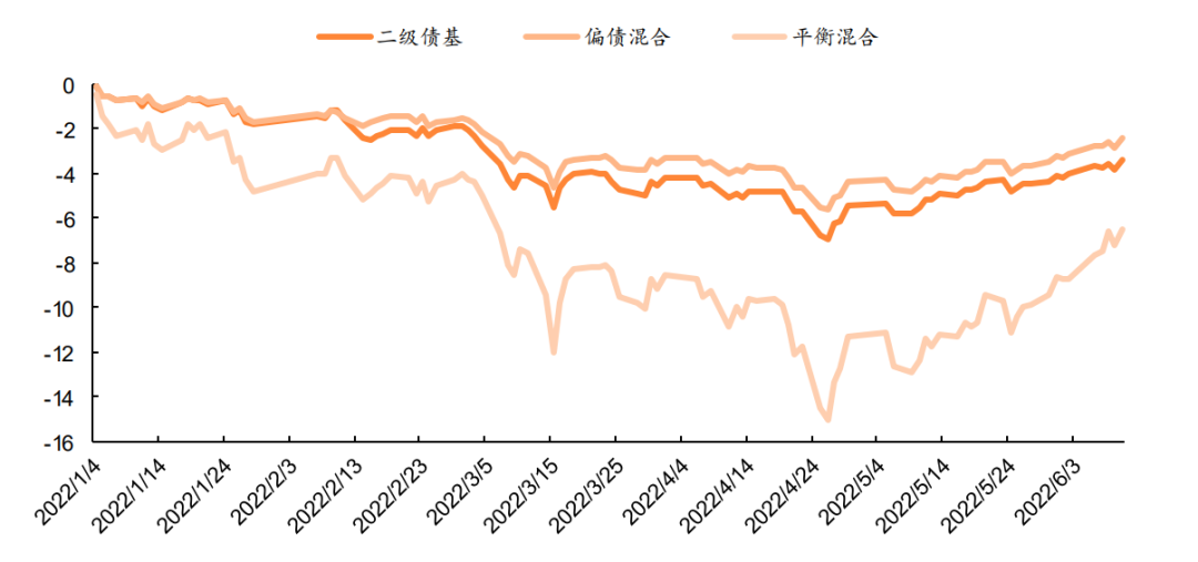 数据同时显示,混合型基金中的12个细分种类,均为负收益,其中,偏股混合型基金为-14.88%,与股基相差无几。同期,“固收+”产品受权益资产下跌拖累,今年以来(截至6月10日)业绩也多为负收益,可转债基金平均收益率为-10.52%;偏债混合型基金平均收益率跌幅相对较小,为-2.31%。