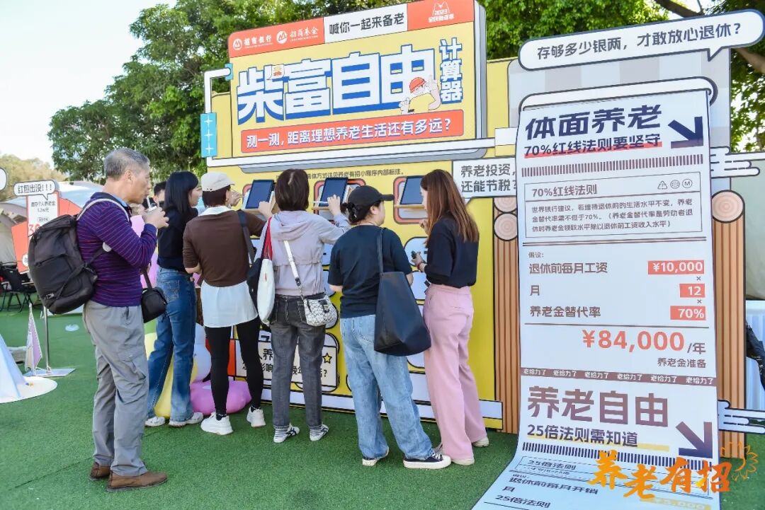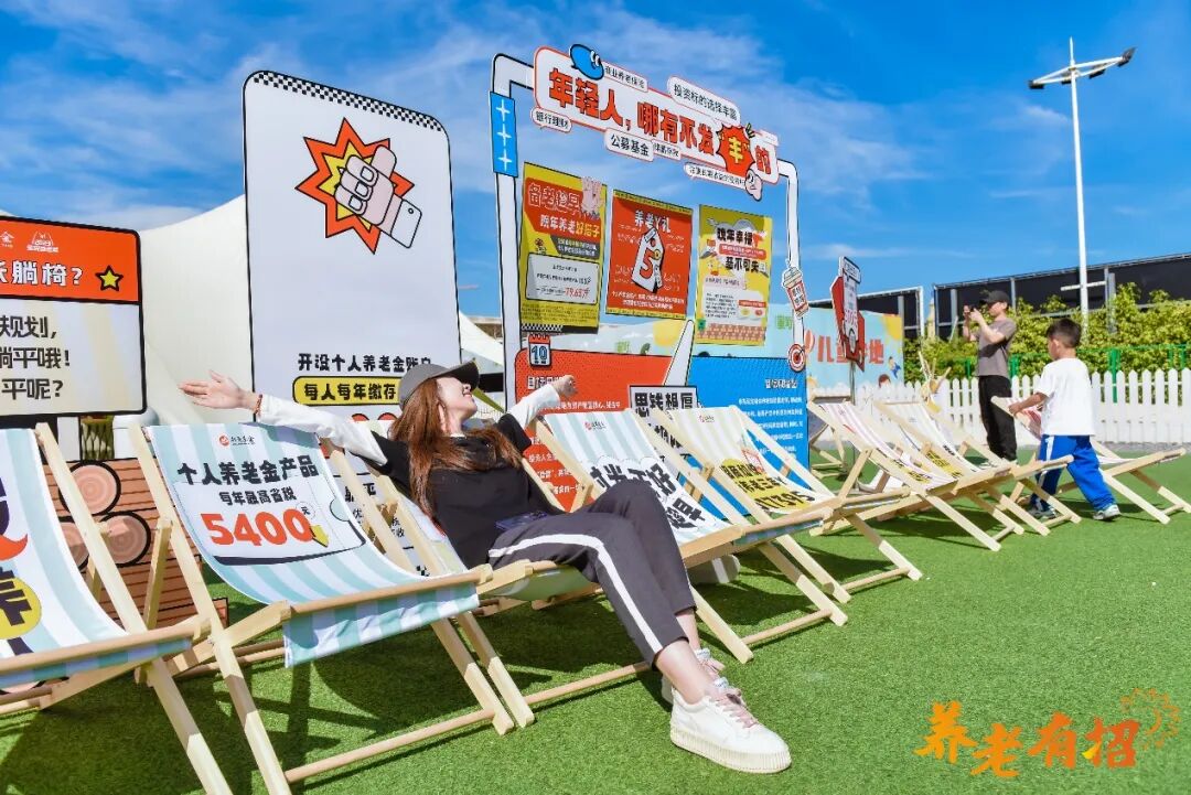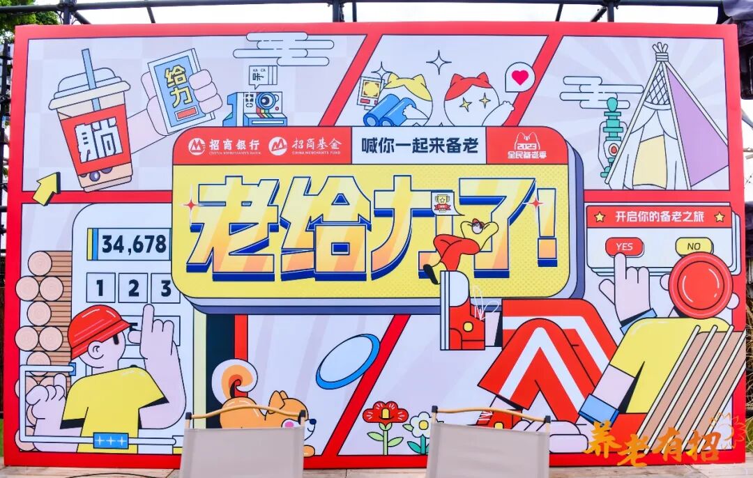 露营快闪活动现场设置有四大打卡活动区:在“柴富自由计算器”区,客户通过个人养老计算器,可以测算距离理想养老生活还有多远,直观地了解到自己当前的养老金缺口,呼唤养老规划意识;在“躺‘瓶’奶茶铺”,将养老金比喻为定制化饮料,其中基本养老保险是“茶底”,个人养老金是“小料”,企业/职业年金是点缀,形象化地展示了养老金三大支柱体系的构成;在“躺平养老新姿势”区,一组可以打卡的躺椅上展示了招商基金个人养老金一系列解决方案,客户得以在拍照互动的同时直观地了解到个人养老金的信息;在“来自未来的‘招’唤”区,客户可以现场写下自己对未来的期待,呼唤起每个人对美好生活的憧憬和备老要趁早的动力。
