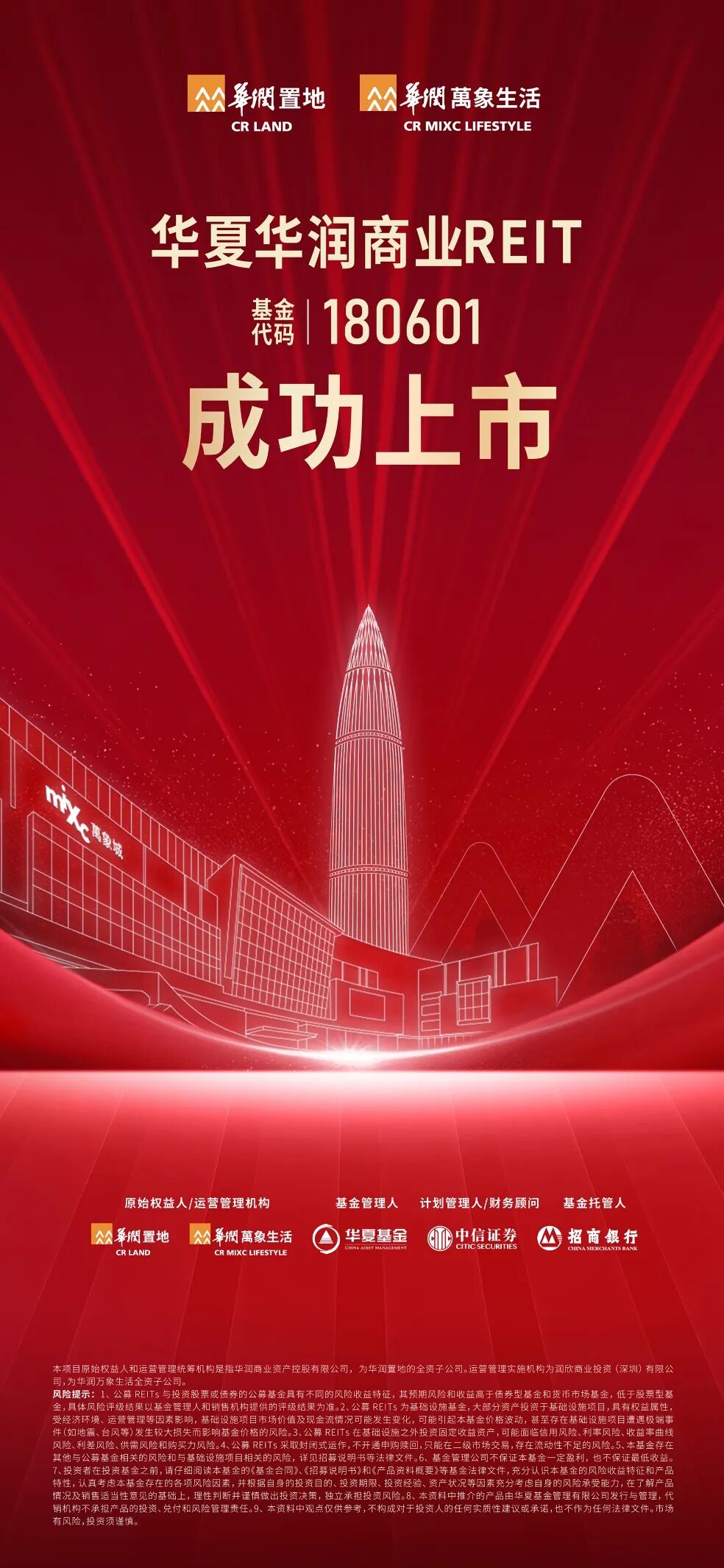 3月14日,华夏华润商业资产封闭式基础设施证券投资基金(基金代码:180601;以下简称:华润商业REIT)在深圳证券交易所成功上市,该项目在首批上市的三单消费基础设施REITs中发行规模最大,达69.02亿元,在已发行34单REITs中发行规模排名第五、产权类项目中排名第一。