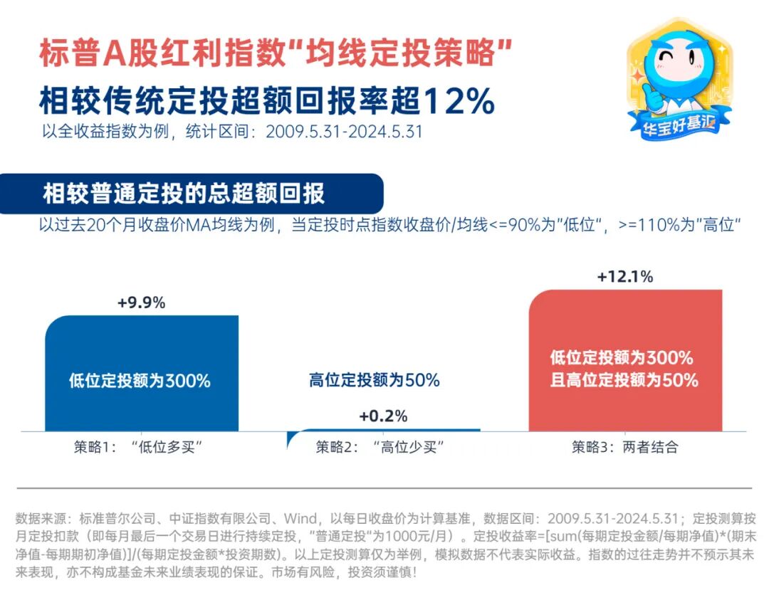 定投的魅力不止大家耳熟能详的“纪律性”与“微笑曲线”。在波动性较大的市场中,定投策略中可进一步强化“低吸”的特性,从而让自己的微笑曲线更顺滑。市面上有相当多的智能定投策略,在此华小宝抛砖引玉,以较为简单的“均线定投策略”,参考均线假设为指数20个月MA均线,以定投金额1000元,为各位“举个栗子”: