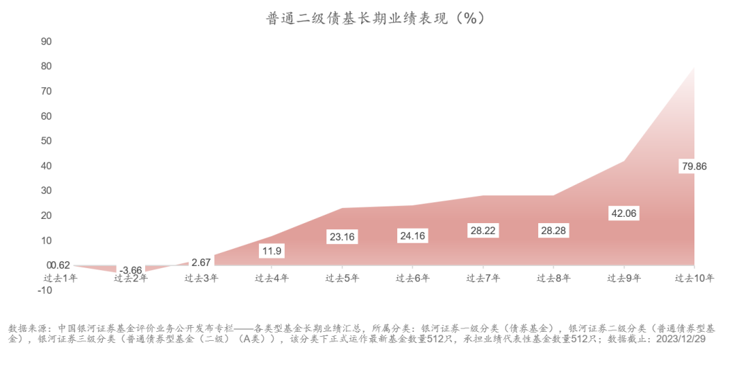 根据银河证券基金评价中心数据显示,普通二级债基在过去10年中表现亮眼。