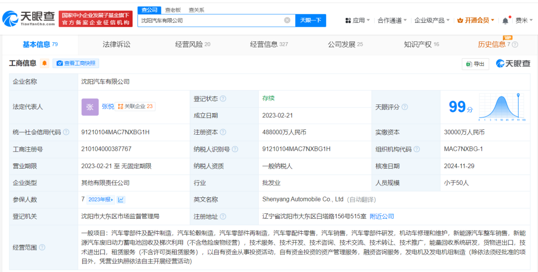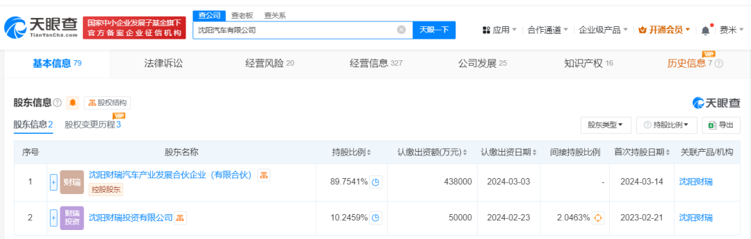 沈阳汽车有限公司成立于2023年2月,注册资本48.8亿人民币,经营范围含汽车零部件及配件制造、汽车轮毂制造、汽车零配件零售等,由沈阳财瑞汽车产业发展合伙企业(有限合伙)、沈阳财瑞投资有限公司共同持股。据媒体报道,华晨中国近期发布公告称,公司执行董事及行政总裁张悦已获委任为董事会主席。今年3月,华晨中国公告称华晨100%股权已转让予沈阳汽车,交割后,华晨已成为沈阳汽车全资附属公司。