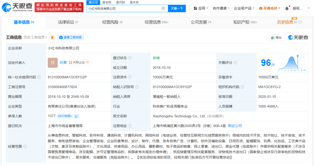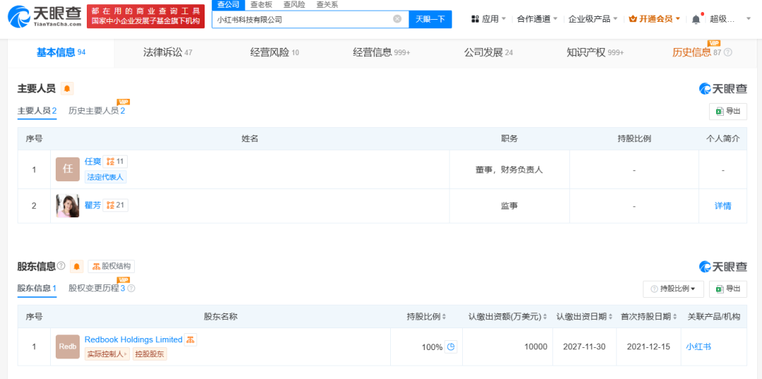 天眼查App显示,近日,小红书科技有限公司发生工商变更,曾秀莲卸任法定代表人、执行董事,新增任爽担任法定代表人、董事、财务负责人。