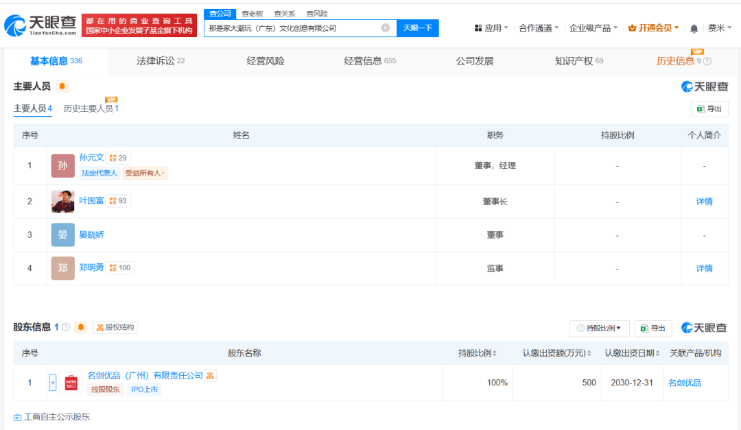 名创优品旗下潮玩公司发生工商变更,叶国富担任董事长