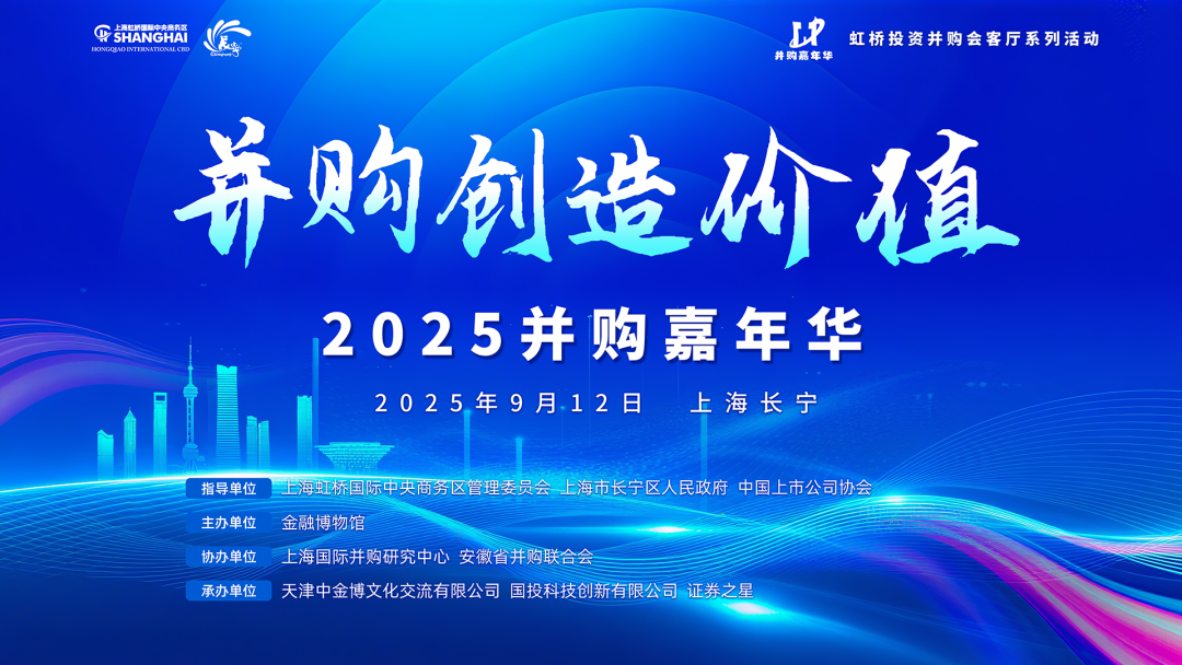 2025年9月12日晚上,以“并购创造价值”为主题的“2025并购嘉年华”在上海市长宁区西郊国际金融产业园圆满落幕。“并购嘉年华”由金融博物馆首创主办,汇聚多方资源共同打造,首届由上海虹桥国际中央商务区管理委员会、上海市长宁区人民政府、中国上市公司协会指导,上海国际并购研究中心与安徽省并购联合会协办,天津中金博文化交流有限公司、国投科创与证券之星承办。当天活动设置了项目路演区、展区洽谈区、会场论坛区、生态嘉年华区,通过政策解读、趋势研判、案例分享与生态交流,成功构建了“资本-产业-区域”三位一体的高效对接平台,为助推经济高质量发展注入了新动能。