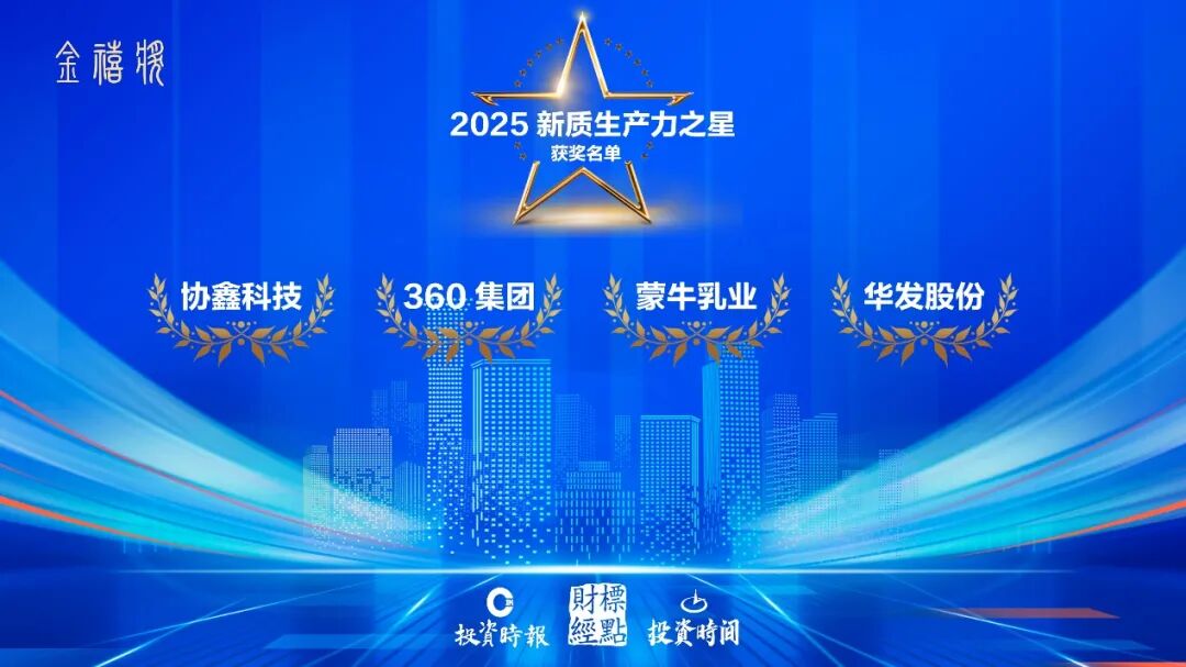 经过数轮激烈的竞争与细致的遴选,这份荣誉的归属终于尘埃落定。最终协鑫科技控股有限公司、360集团、内蒙古蒙牛乳业(集团)股份有限公司、珠海华发实业股份有限公司脱颖而出,摘得“2025新质生产力之星”奖项。
