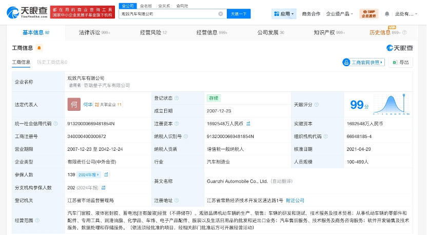 天眼查工商信息显示,观致汽车有限公司成立于2007年12月,法定代表人为何华,注册资本约169亿人民币,经营范围含汽车门窗胶、液体密封胶、蓄电池[注有酸液]经营,观致品牌机动车辆的生产、销售,车辆的研发和测试等。