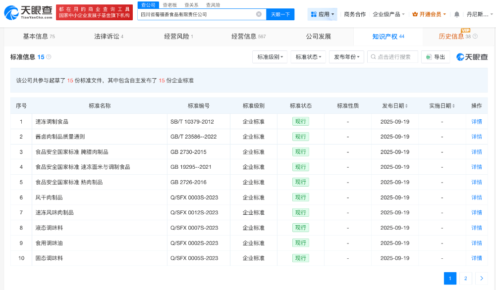 值得一提的是,上述三家公司均参与起草过食品相关企业标准,包括四川省蜀福香食品有限责任公司参与制定的速冻调制食品、酱卤肉制品质量通则等企业标准,重庆市曾巧食品有限公司参与制定的火锅食材 凤爪团体标准,成都市明扬食品有限责任公司参与制定的风味肉制品企业标准等。