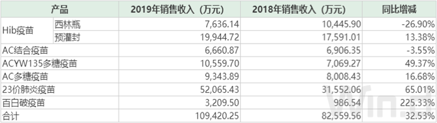 沃森生物主要疫苗产品近两年销售收入情况