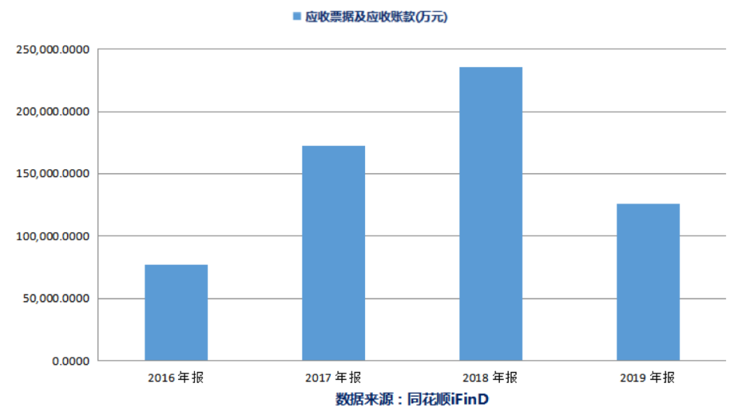 年报披露,截至2019年末,欢瑞世纪应收账款余额占报告期营业收入的233.89%,占公司总资产的35.58%。同时,应收账款周转率下降至0.3,较2018年的0.66大幅下降。