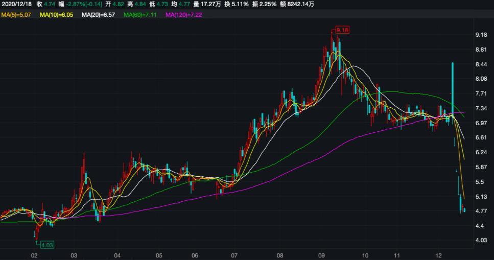 截至2020年12月18日,南京化纤股价收于4.74元/股,最近七日股价跌幅已达38.44%。