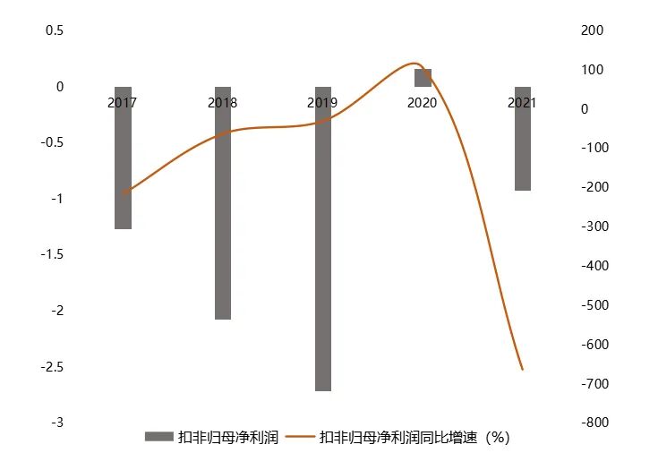 海南椰岛2017年—2021年扣非归母净利润及扣非归母净利润同比增速
