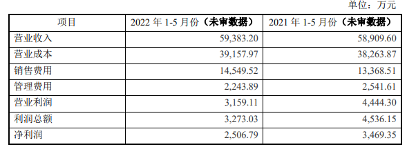 唐人医药2022年1—5月未经审计财务数据